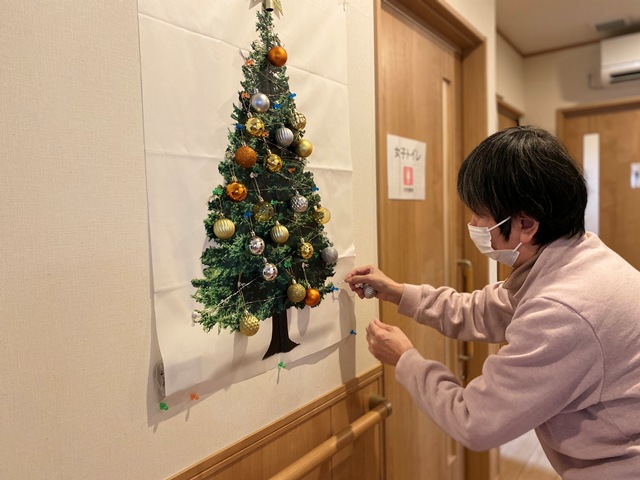 いちご松岡の壁にもクリスマスツリーが飾り付されました♪