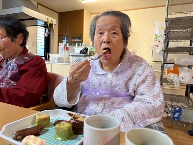 チョコレートをつけると、我慢できずにパクッと口に入れてしまう利用者様もちらほら…