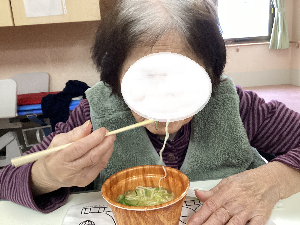 利用者様からの「久しぶりにラーメン食べたな・・・」。何気ない一言から、おやつ時間にラーメンを食べました!お味は塩ラーメン!「ラーメンなんて久しぶりや!」「美味しいわ~!」と皆さん良い食べっぷりでした!