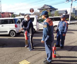 消火器の使用方法の説明後には、実際に消火訓練もしました