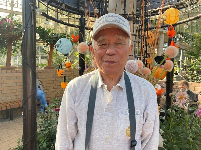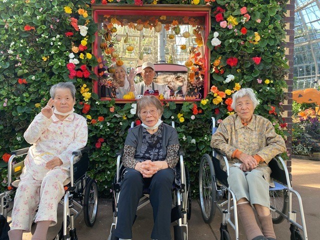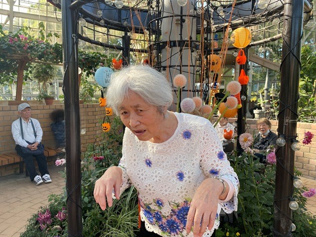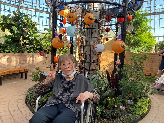 お天気が良かったのでグリーンセンターに外出しました♪ タマネギハウスの中はハロウィンの飾り付けがしてあり とてもきれいでした!