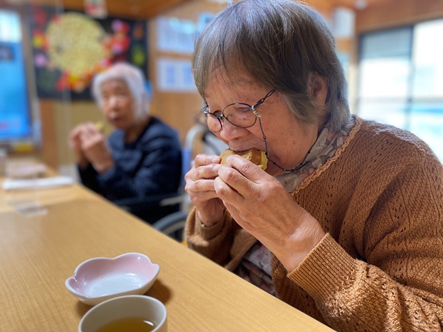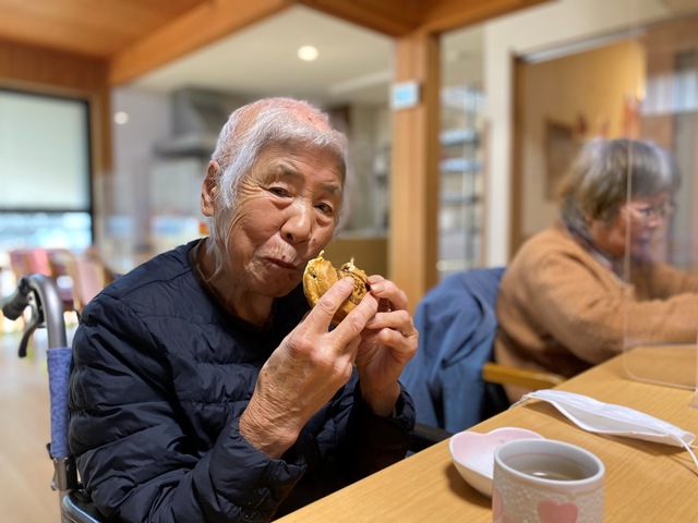 グリーンセンターに出かけた後は、 医科大前の夢ふくさんにお邪魔して餡子たっぷりの大判焼きをおやつに購入しました。 デイに戻って温かいうちに召し上がりました。 とっても大きくて食べきれるか心配していましたが… 皆さまペロリでした♪