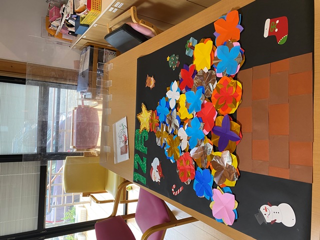 ということで、ポインセチアをたくさん作ってクリスマスツリーにしました♪