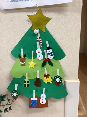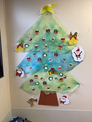 もうすぐクリスマスですね。健康の家では大きなクリスマスツリーを制作しました。小さなツリーも所々に飾って気分はもうクリスマス★