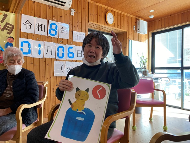 おじゃみをなげてとるので札の場所が分かってもなかなかとれず… とても盛り上がっていました。