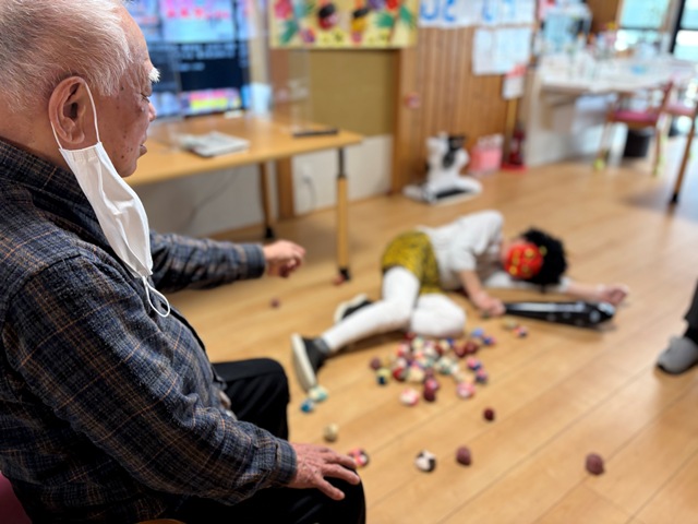 2/3は節分! ということでいちご松岡にも鬼がやってきました… 皆さんでおじゃみをなげて鬼退治! 鬼は外!福は内! と元気におじゃみを投げました。