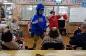 和田東にも鬼がやってきました! 「鬼は外!福は内!」と言いながらも、やさしく豆を投げる利用者様たちです。 終わった後には「あ~楽しかった!」との声も聞かれました。