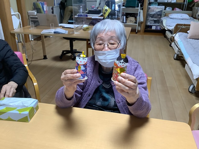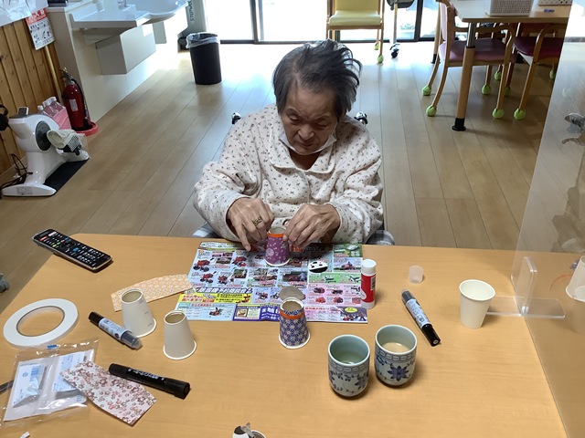 紙コップで雛人形を作りました♪ 色とりどりの折り紙の中から着物の色を真剣に選ばれ可愛い顔を書かれていました。 皆さま真剣な表情ですね…