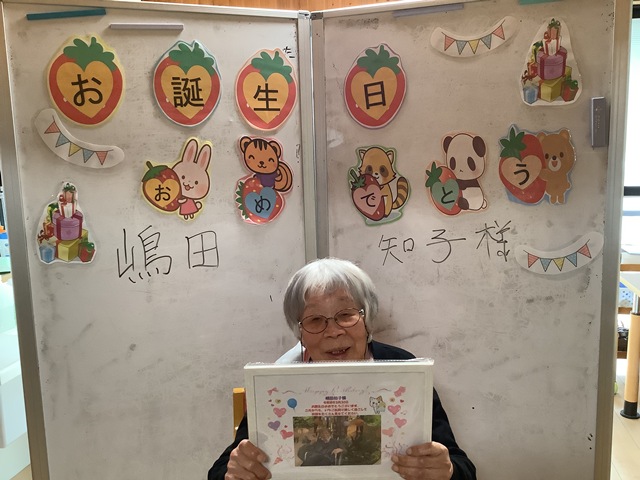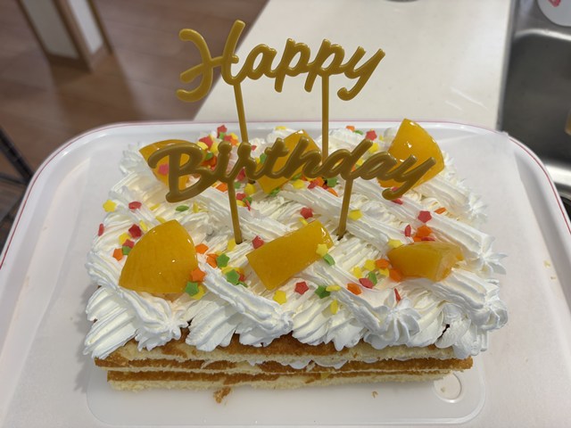 お誕生日をお祝いしました! 甘い物がお好きという事でケーキを作りました♪ 元気に長生きしてほしいという気持ちを込めてお祝いしました♡