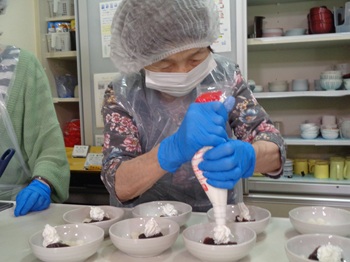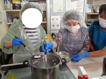 お月見団子を入居様と一緒に作りました。 丸める所から始め盛り付けまで全てやって頂き美味しいものが完成しました!!