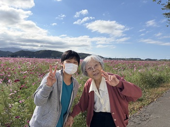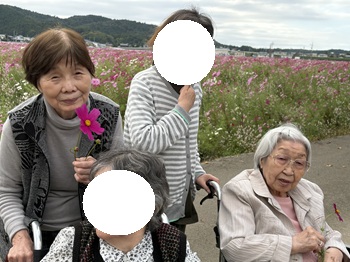 「こんな所初めて来た」「綺麗やね」と話しながら楽しまれて終始笑顔で過ごされていました(*^-^*) コスモスも持ち帰り居室に飾っていました!