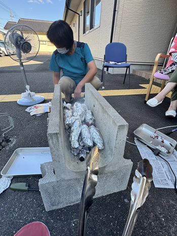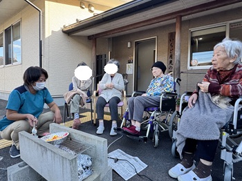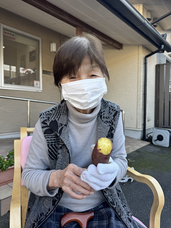 風が少し吹いていましたが焼き芋を焼いている火に辺り暖かいねと話していました。 まだ出来ないかな?とみんなで話しながら焼き芋が焼けるのを待ちました。