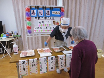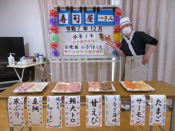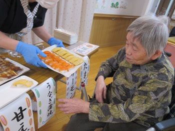 お昼ご飯にスシローさんで頼んだお寿司を召し上がりました。 皆さんにご自身の好きなお寿司を選んで召し上がっていただきました。