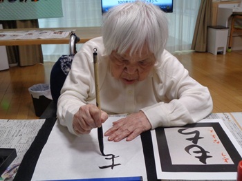 月見の里では1/1から書初めを皆さんで行いました!!