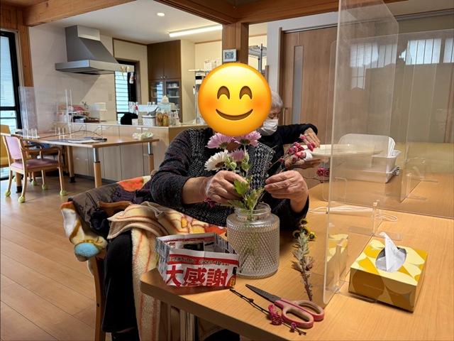 利用者様が菊と一緒に綺麗に飾って下さいました♪