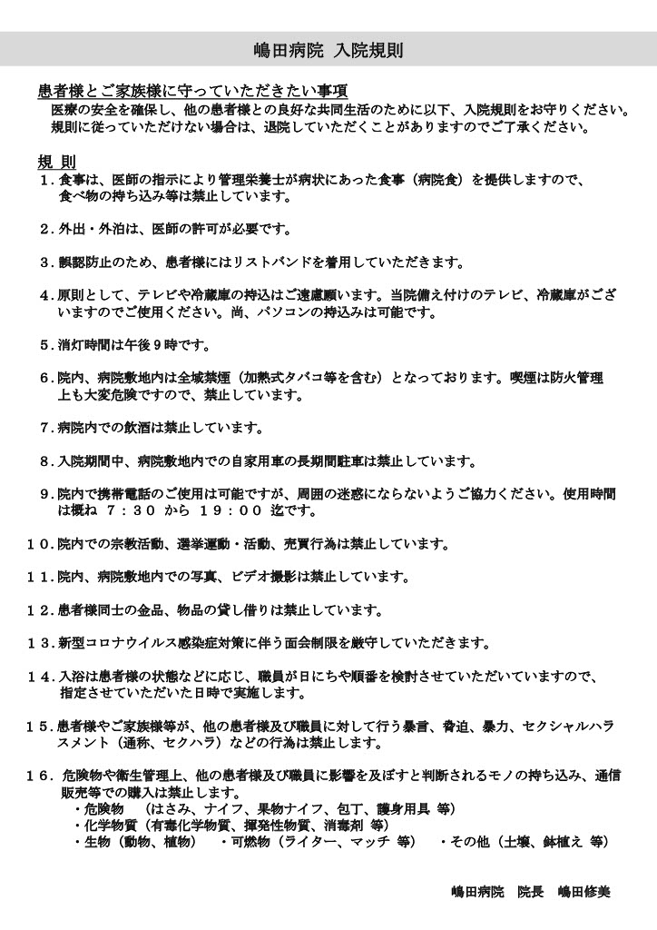入院患者様への誓約書【4F5F6F回復期A・B病棟】