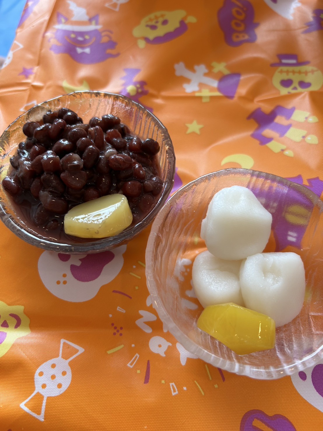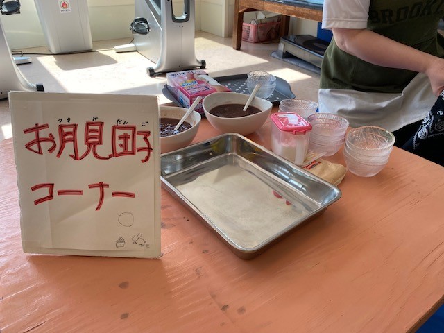 お月見団子は、子どもたちにあんこやきなこをまぶして作ってもらいました。